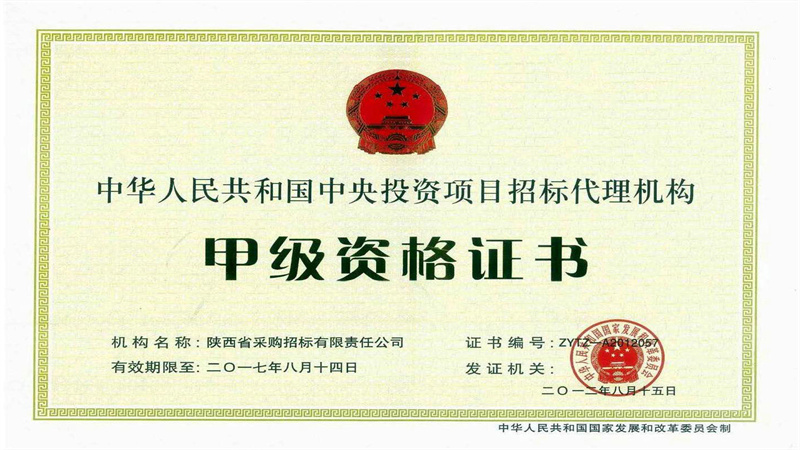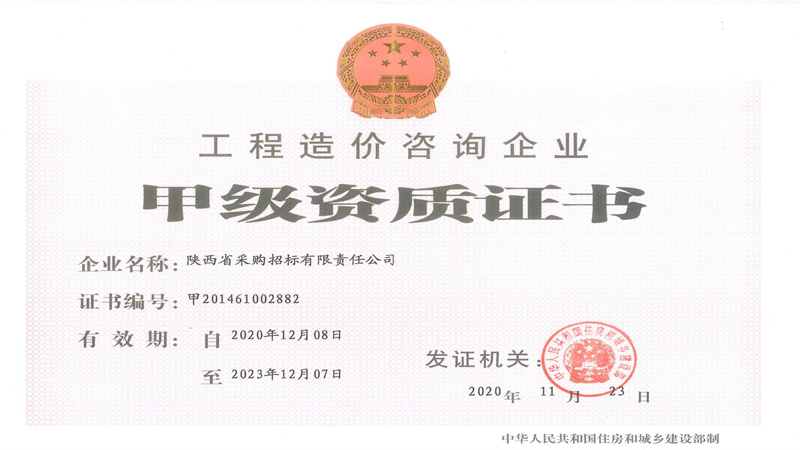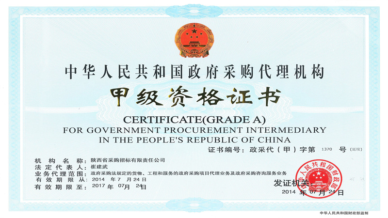 政府采購甲級資格證書