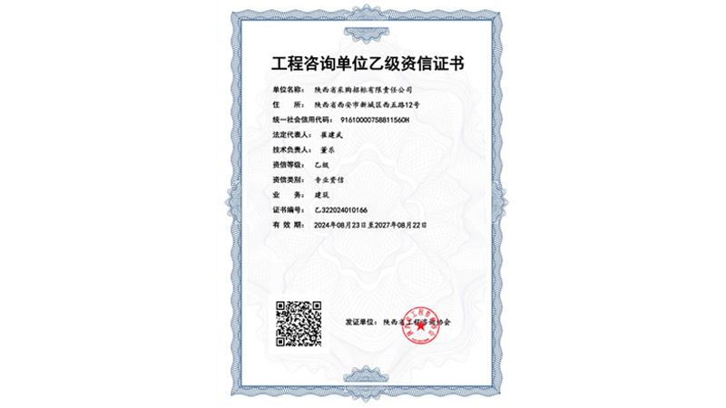 工程咨詢單位乙級資信證書